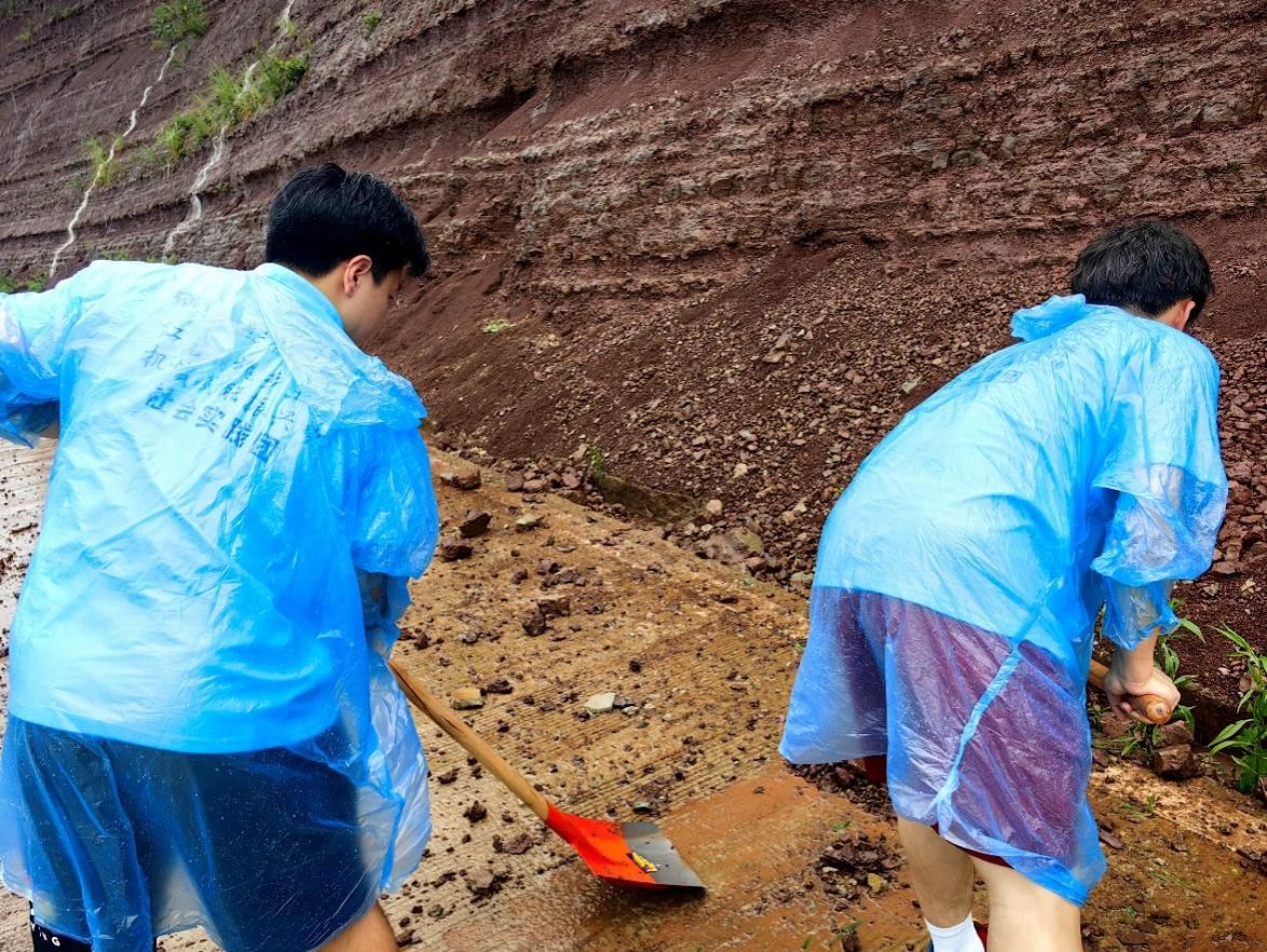 7月9日,重庆工商大学beat365在线体育 “红岩铸魂乡土情,机械赋能振兴梦” 社会实践团队在江津区支坪镇白溪社区开展实践活动期间,遭遇强降雨恶劣天气。大量落石阻断交通,给社区居民出行和生活带来极大困扰。面对突发状况,实践团队成员陈源、杨竣然、徐振超等同学挺身而出,与白溪社区书记及当地村民携手,全力投入道路清理工作,用行动诠释新时代青年担当。