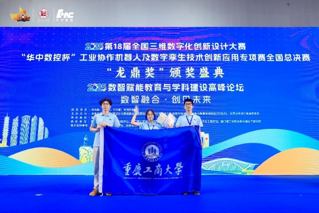 2025年8月19日,第18届全国三维数字化创新设计大赛“华中数控杯”工业协作机器人及数字孪生技术创新应用专项赛全国总决赛圆满落幕。公司beat365在线体育罗瑞鸿、黄梓源、胡瀚三名同学组成的参赛团队凭借卓越表现斩获全国一等奖,成为本次赛事中川渝地区高校唯一获此国家级殊荣的队伍,彰显了公司在相关领域的教学实力与员工创新潜力。