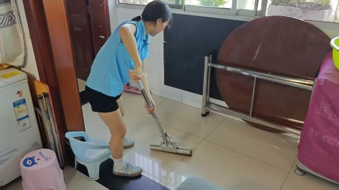 上午8点整,同学们带着工具和提前购买的防滑垫、收纳盒来到老人家中。5 名同学分成两组:一组负责 “器物养护”,另一组负责 “空间整理”。