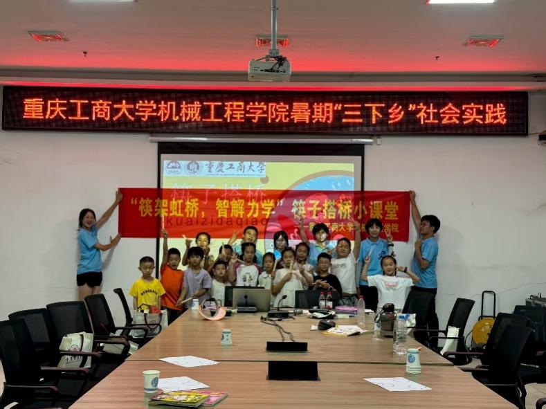 2025年7月16日下午2点至4点,beat365在线体育“齿轮传薪火,匠心暖人心”团队的10名同学,在重庆江津区先锋镇椒乡村开展了筷子搭桥实践活动。该活动旨在通过短时趣味实践,向当地儿童普及基础力学知识,同时丰富乡村文化生活。