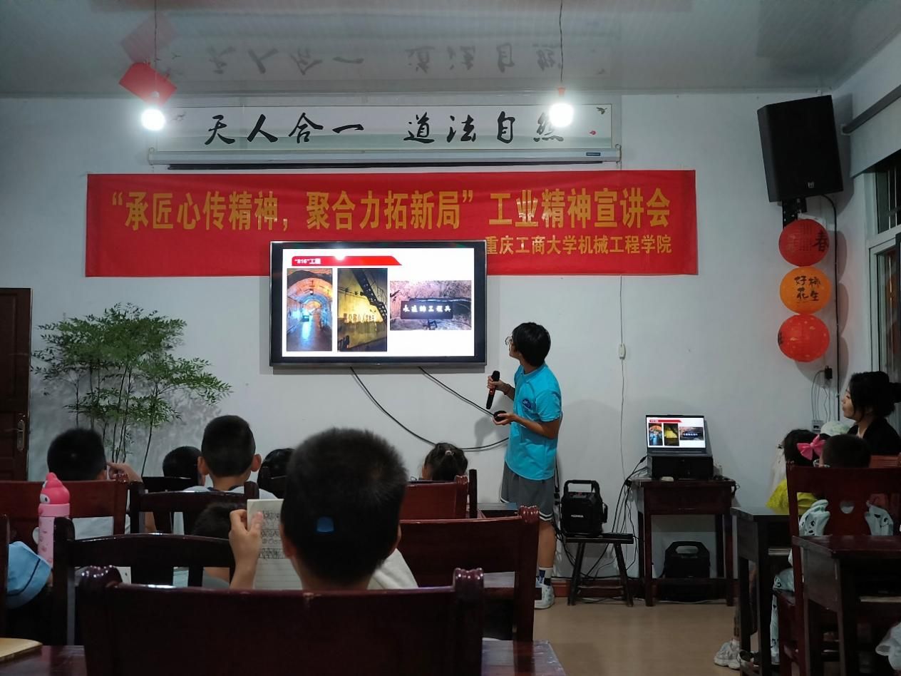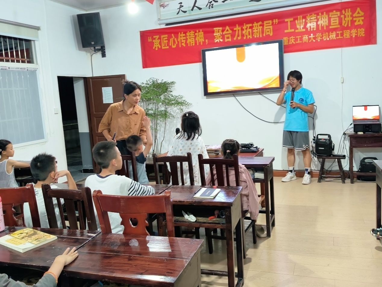 作为智能制造工程专业员工,团队成员将专业知识与乡村实际需求相结合,重点介绍了工业机器人、数字孪生技术在农业现代化中的应用前景。活动现场设置了“工业精神大家谈”互动环节,对本次“传承匠心传精神,聚合力拓新局”的主题,该团进行了自己的理解与想法分享并与在场众人进行交流。团队结合重庆工商大学“产教融合”育人理念,鼓励本地青年通过技能培训参与工业现代化进程。