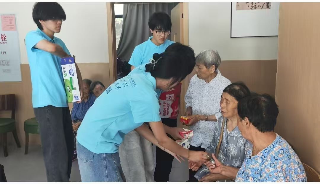 7月17日下午1点,烈日当空,热浪透过窗户涌入屋内,“智美赋能乡村,科创驱动振兴”社会实践团来到当地养老院。进入活动室前,团队负责人特意召集成员,叮嘱道:“和老人们交流要耐心些,声音放缓,多听他们说,问问日常起居,别聊太复杂的话题。”随后,成员们带着牛奶走进活动室,里面正坐着几位百岁老人,“硒望之旅,探源寿乡”走访活动正式开始。