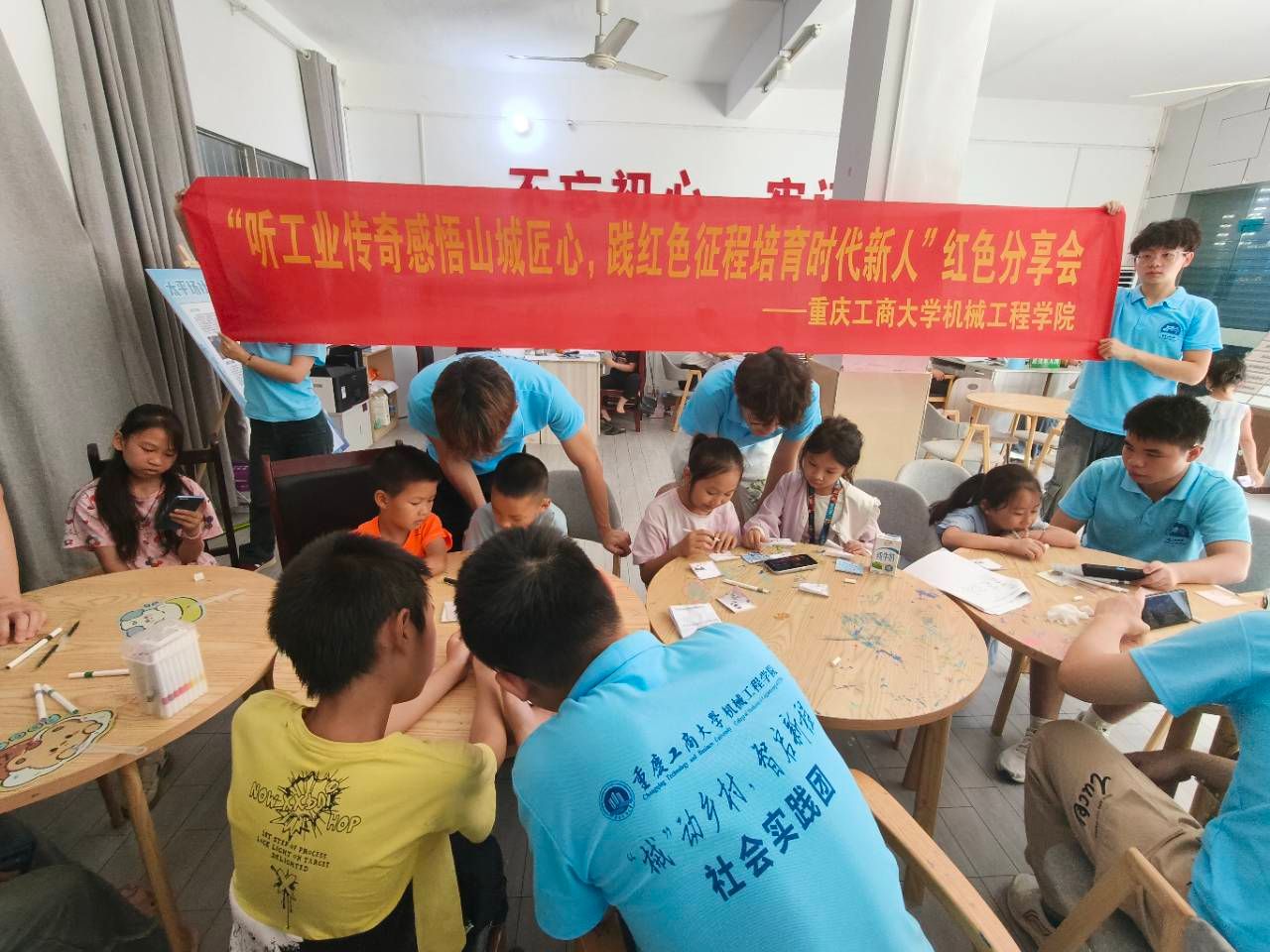 七月流火,难掩青春似火。为厚植孩子们红色基因,传承重庆工业精神与革命精神,为深耕孩子们红色教育沃土,让重庆工业精神与革命精神在新一代心中落地生根。7月17日下午,beat365在线体育“械动青春,智启新程”社会实践团开展 了“红色育苗” 系列活动,以分享会与趣味运动会为载体,为孩子们带来沉浸式红色教育体验。