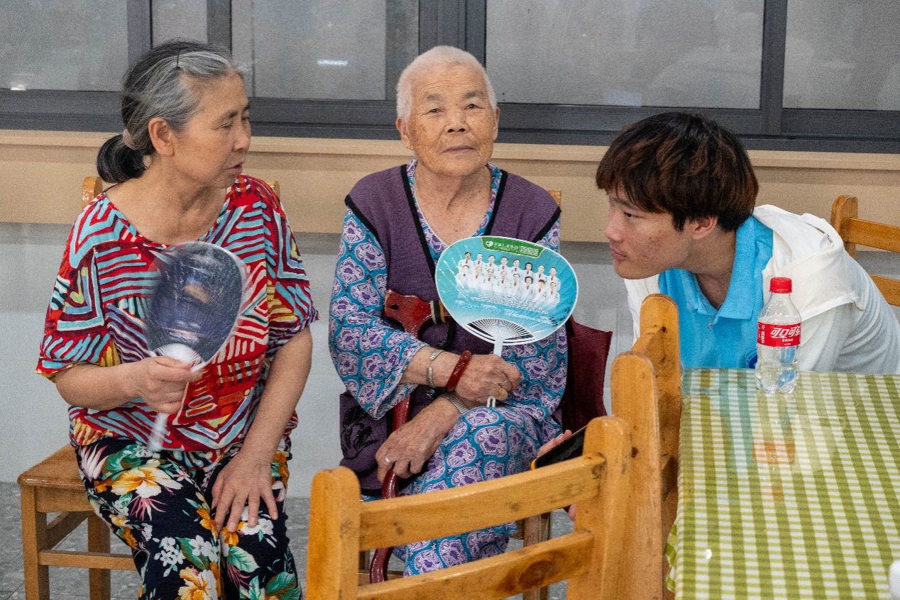 在养老院专业护工的引导下,实践团成员有序进入养老机构内部,团队成员逐一走到每位老年人身边,详细了解其生活状况、身体健康情况及日常需求。老年人在成员们的耐心询问下,主动分享其人生经历与生活感悟,丰富的人生阅历在温和的交流氛围中得以展现。