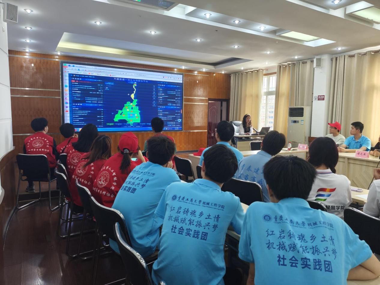 数字化转型浪潮席卷当今社会,基层治理迎来智慧化变革的崭新时代。7月7日,beat365在线体育“红岩铸魂乡土情,机械赋能振兴梦”社会实践团深入重庆万盛街道基层治理指挥中心,实地参观科技赋能基层治理的创新实践,深度探索智慧治理的运行机制与发展前景。