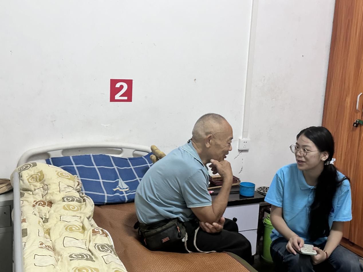 活动当天,磅礴的大雨也阻止不了服务团同学们的热情。同学们早早的来到敬老院,打扫卫生、收拾碗筷。之后在为老人们剪指甲的过程中,同学们陪老人们的闲聊逐渐打开了他们的话匣子,讲述起了他们所知道的红色故事。
