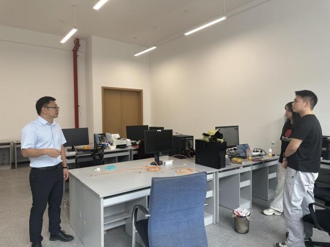 在研究生工作室,副经理谢俊要求研究生双节期间注重用电安全与环境卫生,确保工作室安全有序。