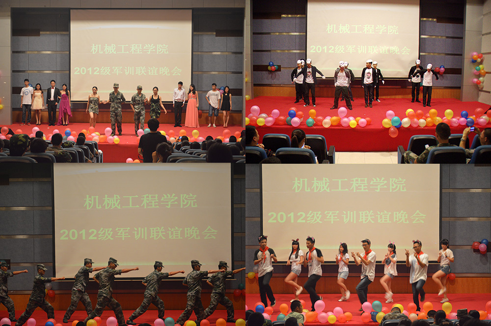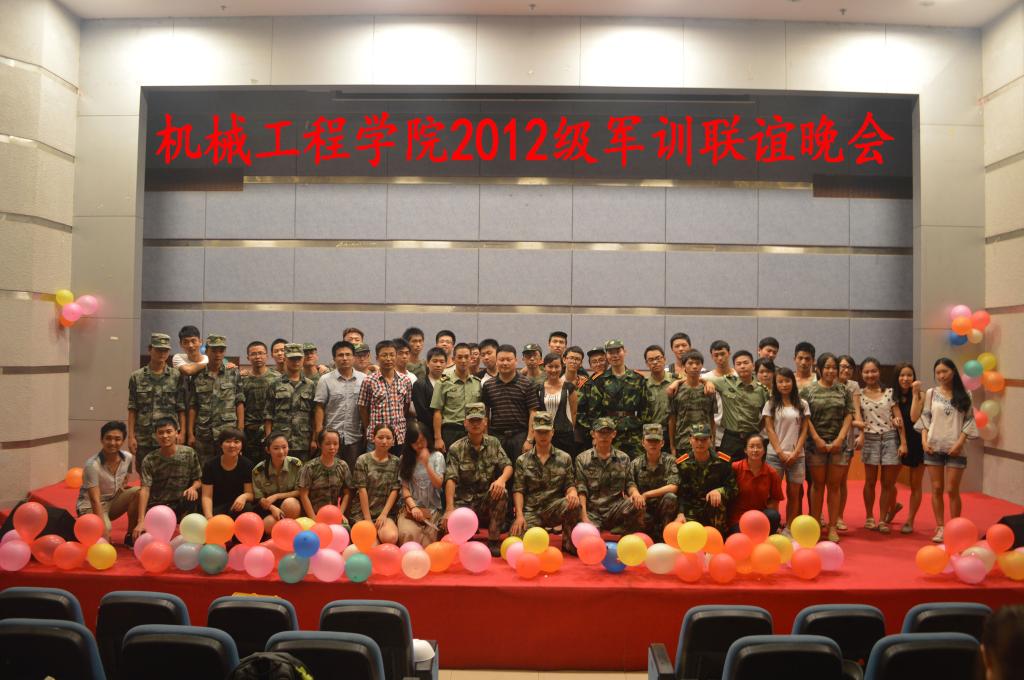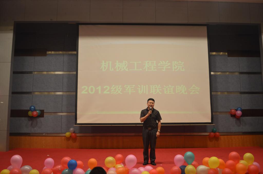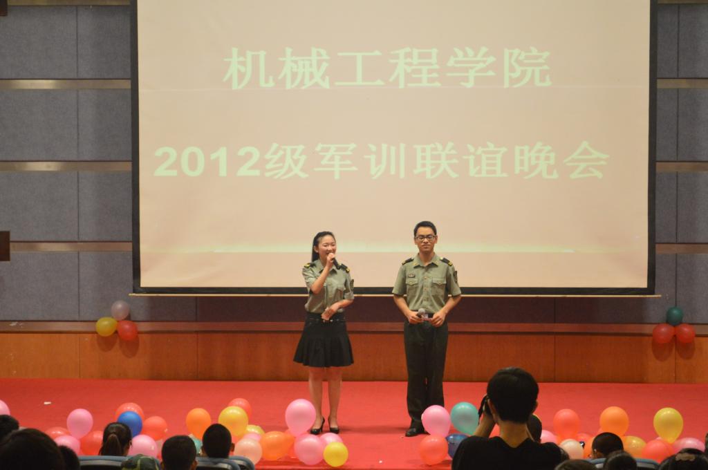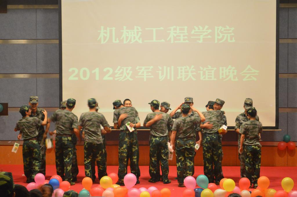 7月7日晚19:00,2012级军训联谊晚会在7100隆重举行。重庆工商大学员工处副处长、二团政委蒋年韬,机械工程公司党总支副书记刘洋,二团四营营长吴彬,指导员王微、张书彬、杜彦斌,以及所有教官,全体学员参加了联谊活动。