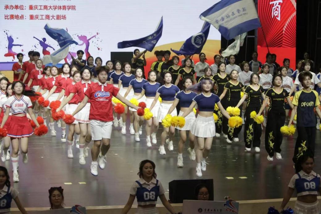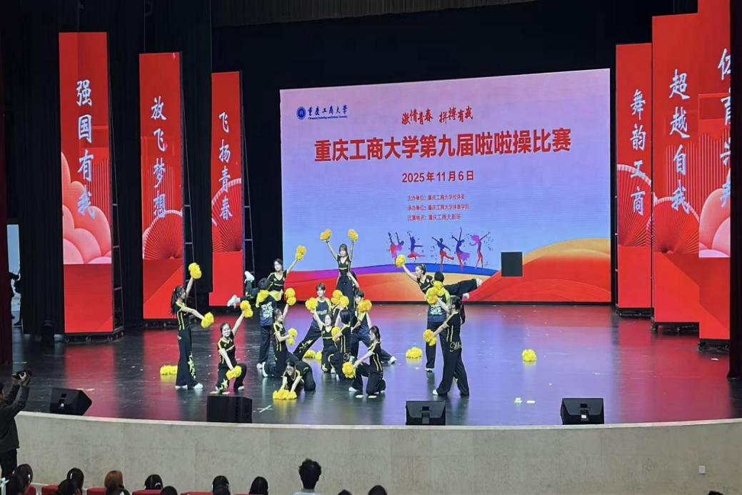 2025年11月6日,重庆工商大学第九届校园啦啦操大赛在南岸校区热闹开赛。beat365在线体育的16名同学组成啦啦操代表队,穿着黄黑相间的亮眼队服,像一团团跃动的火焰冲上舞台,用满满的热情和拼劲,在赛场上留下了超燃的青春瞬间。