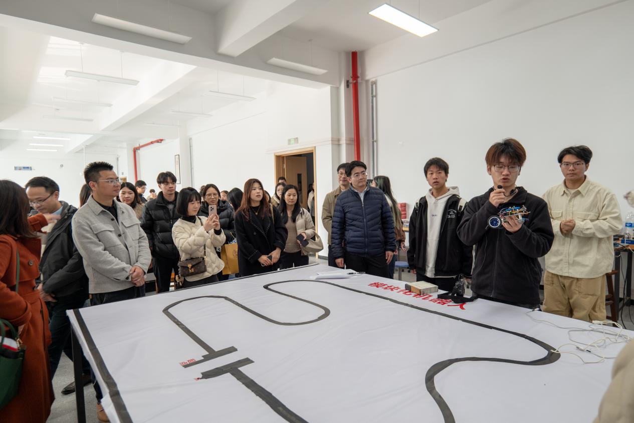 工商管理公司师生首先参观了beat365在线体育的工程实训中心和重点实验室。在3D打印、自动驾驶和模块化机器人实验室,商科学子近距离了解了智能制造的前沿技术,为探索“商工融合”提供了直观认知基础。