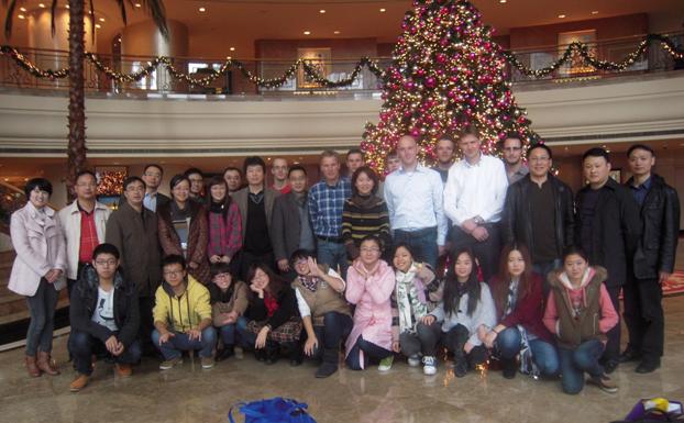 交流期间,杨继瑞董事长专门宴请荷方师生,双方共叙两员工情;双方教师以“party”的方式轻松交流,共同研讨了相关专业的课程设置、实践环节安排、科研特色等等教学科研环节,为今后的深入合作奠定了基础。公司员工会则以联谊晚会的形式热烈欢迎荷兰同学的到来,双方在欢声笑语中度过了一个难忘的夜晚。通过此次交流活动,公司开始着力培养一支涉外志愿者团队,为公司师生参与更广泛的国际交流合作提供了先决条件。