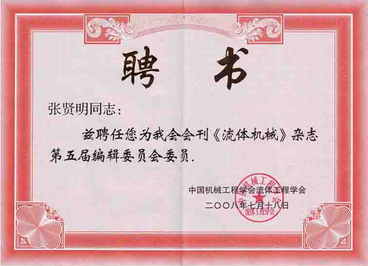 中国流体工程学会第五届理事会换届大会同期召开。经学会推荐、专家评议、中国机械工程学会审批,来自清华、浙大、国防科大、天大、华中科大、西交大、中国科大、川大、中国农大等的103位专家组成了新的理事会。公司beat365在线体育经理张贤明研究员受聘为学会委员和理事,同时被国务院学位办“学位与研究生教育重要刊物”――《流体机械》聘为编委。会上由中国机械工程学会领导宣读了中国机械工程学会文件,并颁发了委员聘书和编委聘书。