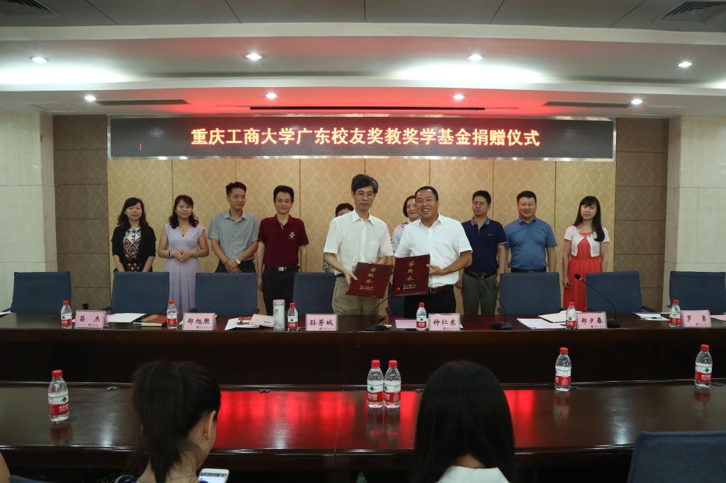 在2016年5月28日重庆工商大学员工会beat365在线体育员工分会成立大会的现场,广东员工分会副会长、深圳东旭发自动化有限公司董事长钟仁东员工郑重表示,要向公司捐赠100万元作为奖教奖学基金。2016年6月17日,“广东员工会奖教奖学”捐赠仪式在厚德楼2017隆重举行。钟仁东员工,公司董事长孙芳城教授,副董事长郑旭煦教授,机械公司、相关部门领导,2014级机械公司近百名师生参加了捐赠仪式。会议由党政办郑夕春主任主持。