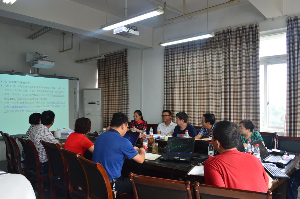 为更好地做好审核评估准备工作,97日上午8:30,在教务处的组织安排下,余鲁、胥江河两位组长带领专家组成员到公司检查工作。公司党政领导、系主任、党政办及教务办相关人员参加了本次检查工作。