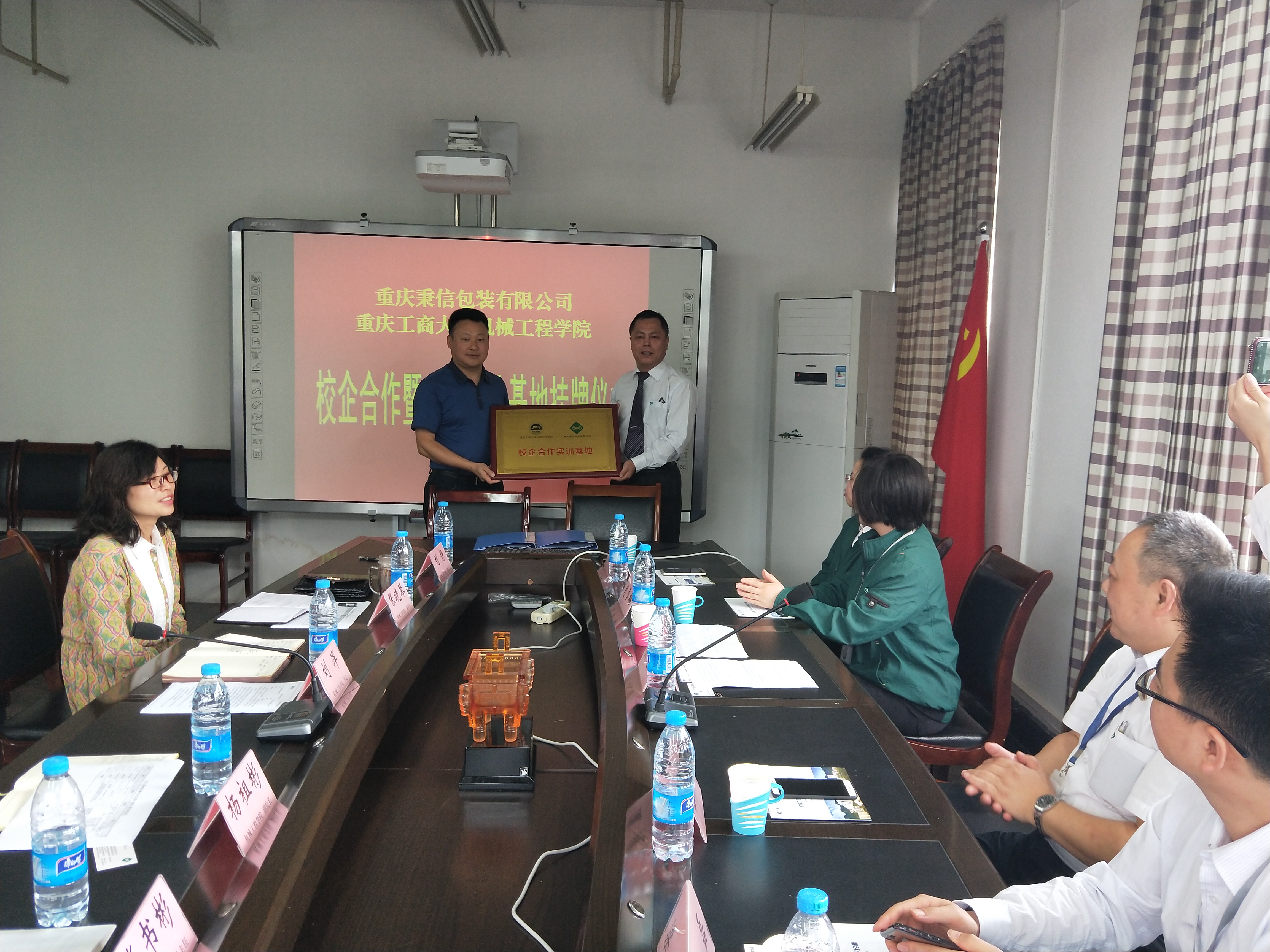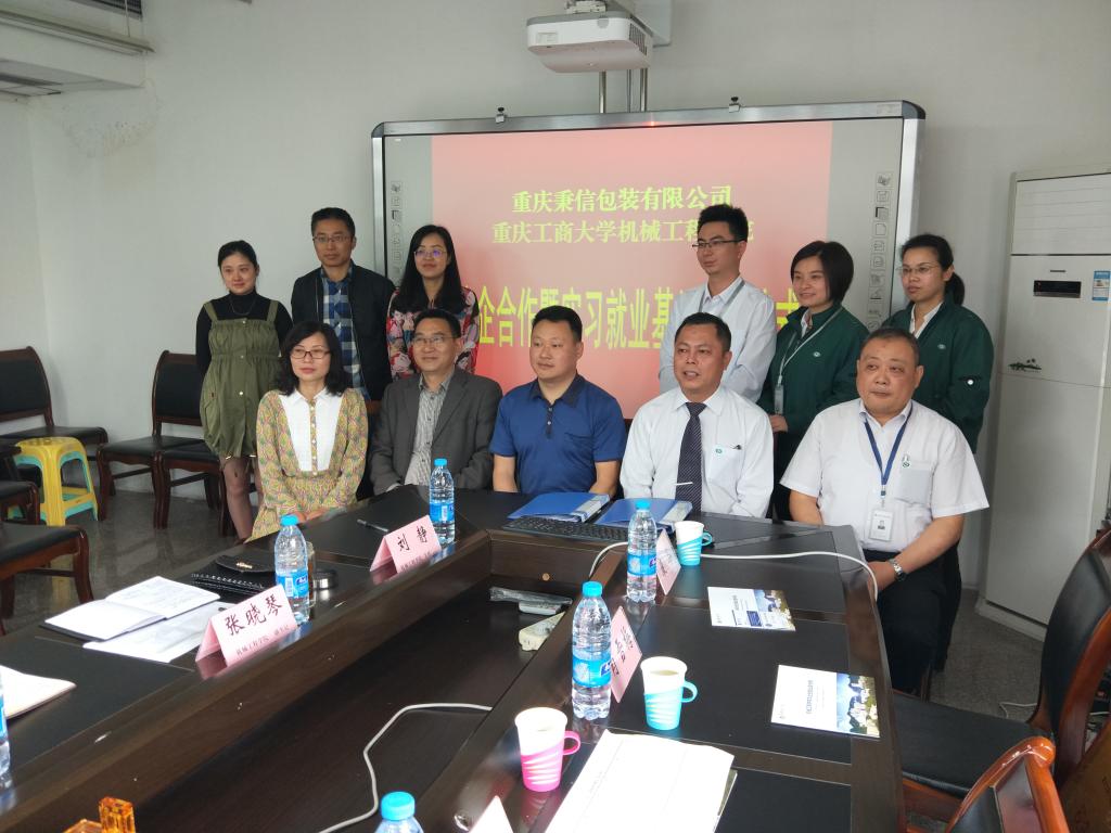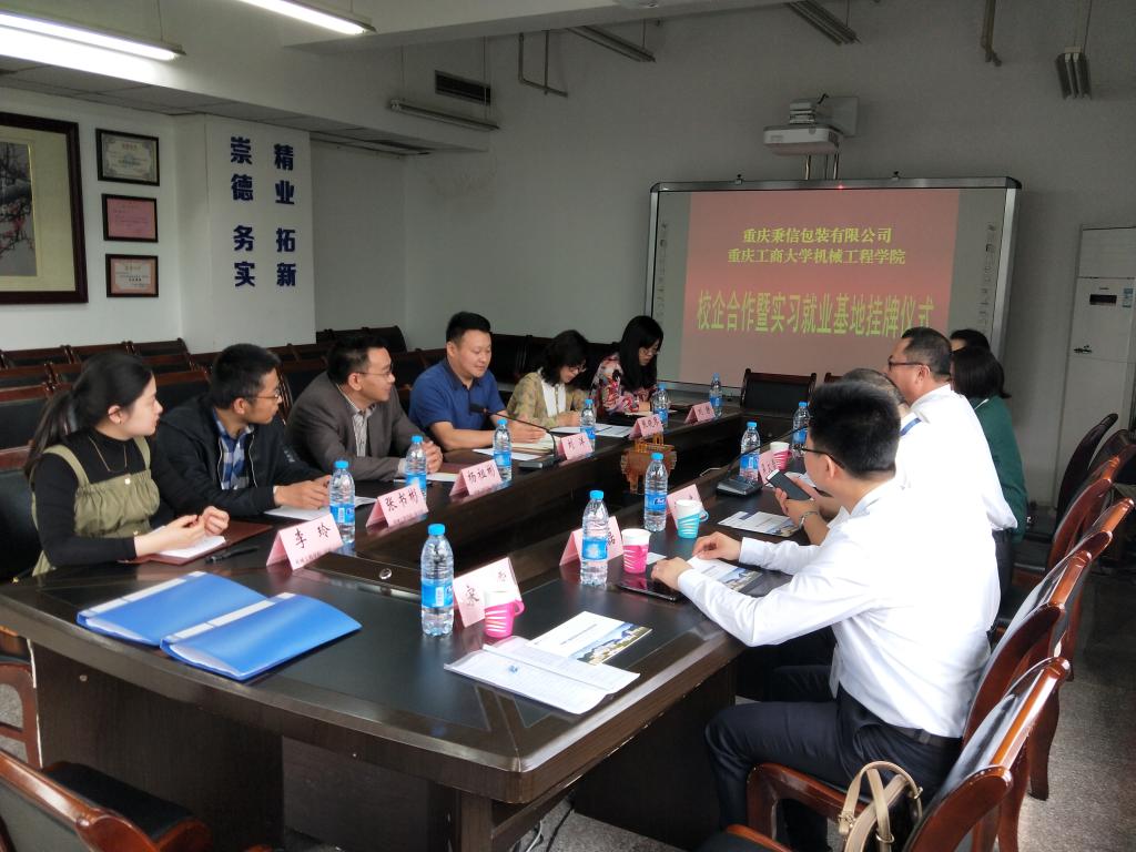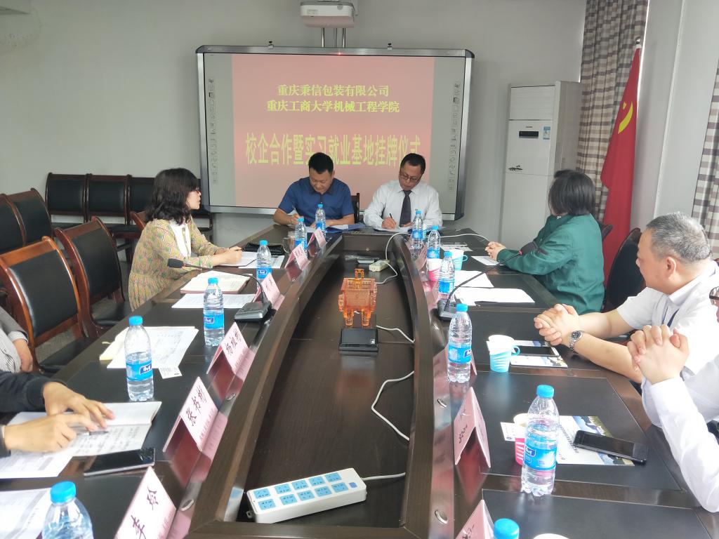 2018年4月27日上午,重庆工商大学beat365在线体育、重庆秉信包装有限公司校企合作签约及授牌仪式在beat365在线体育会议室举行。公司分管教学副经理杨祖彬教授主持签约及授牌仪式,公司党总支刘洋书记和张晓琴副书记、党政办刘静主任、包装工程系张书彬主任、学团办李玲主任,秉信包装有限公司西南事业部吴文雪总经理、温建厂长、品管科康谷科长、营业科梁磊科长、人资科肖雪梅科长、校企合作项目负责人宋春霞等参加了签约及授牌仪式。