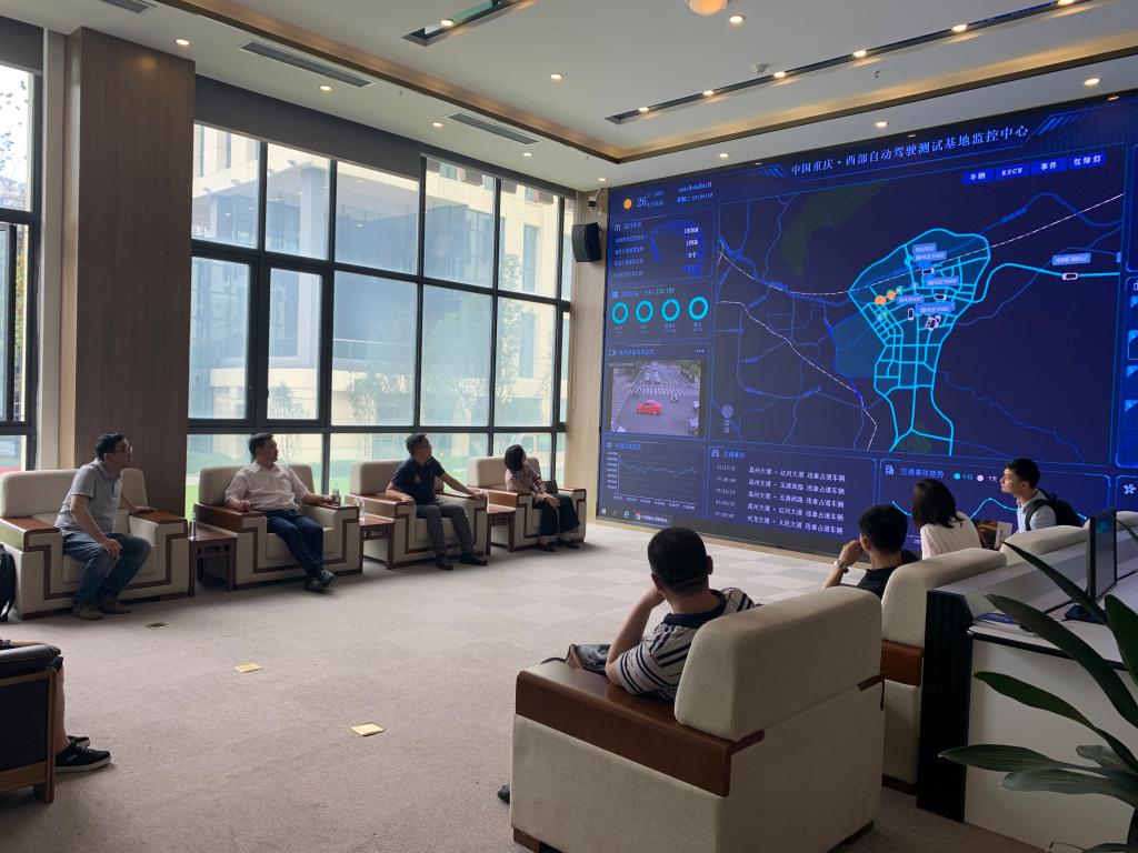 beat365在线体育一行人在百度智行信息科技(重庆)有限公司代表秦绪锋的带领下参观了百度Apollo西部自动驾驶开放测试与示范运营基地和自动驾驶测试基地监控中心,体验了自动驾驶车辆乘坐,大致了解了百度智行目前的科技研发主要内容和形式。