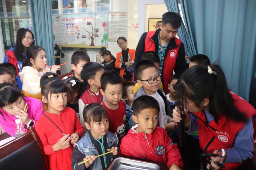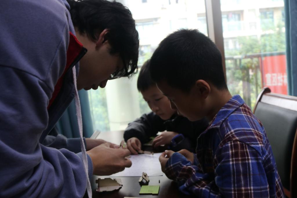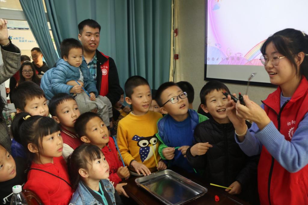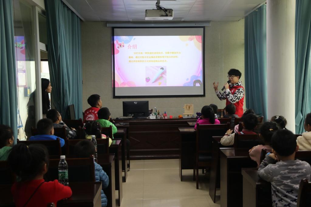 活动伊始,小朋友们陆续和家人来到活动地点,志愿者们牵着小朋友们的手走进教室。第一堂课上,志愿者代表给小朋友们科普3D打印和激光雕刻的相关知识,通过视频、图片加真实模型的结合,让小朋友们进一步了解现代的部分科学技术。随后让小朋友们观看3D打印和激光雕刻的作品,小朋友们都充满了热情和兴趣。课堂期间志愿者们拿出用激光雕刻打印模型和小朋友们一起拼接,锻炼小朋友们的动手能力,也更好的让小朋友们理解激光雕刻的原理。在志愿者们的协助下,作品顺利完成,小朋友们脸上也洋溢着快乐的笑容。第二堂课上,志愿者小讲师通过ppt和视频结合,给小朋友们讲解南水北调和会动的画两个游戏的原理以及演示实验过程。志愿者们用提前准备好实验材料,让每个小朋友都亲自感受科学实验的魅力,志愿者们也时刻陪同照顾,帮助着小朋友们实验的进行。在一个个小实验中,小朋友们心中科技的种子已悄然萌芽,期待它的茁壮成长。活动尾声,志愿者与小朋友们合影留念。本次科普活动圆满结束。