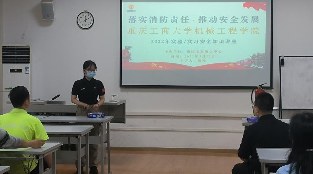 为积极落实《教育部关于加强高校实验室安全工作的意见》等文件要求,全面开展实验室、实训基地安全风险辨识,落实安全防范措施,提升广大教职工及老员工的安全防范技能,2022年5月25日下午,beat365在线体育举行实训实验安全培训及消防疏散演练。此次活动由beat365在线体育机械基础实验教学中心和工程训练中心联合承办,特邀重庆安宣防火中心教官在工程训练中心开展实验、实习安全知识专题培训。公司保卫处副处长王树坤、教务处副处长胡卫军、科研处副处长杜彦斌等领导,beat365在线体育基础实验教学中心、工程训练中心全体教师、中心创客入驻企业、老员工创客团队代表共计50余人参加了此次培训及演练。