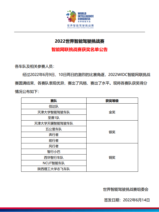 近日,2022世界智能驾驶挑战赛(WIDC)在天津市东丽区举办。世界智能驾驶挑战赛是世界智能大会的重要组成部分,由国家发展和改革委员会、科学技术部、工业和信息化部、国家互联网信息办公室、中国工程院、中国科公司、中国科学技术协会和天津市人民政府共同主办,东丽区人民政府、中国汽车研究中心有限公司、中国生产力促进中心协会、中国人工智能学会智能驾驶专业委员会等专业机构共同承办。本届赛事共吸引了包括清华大学、吉林大学、东南大学、哈尔滨工业大学、天津大学、北京交通大学、极狐、蔚来、理想、小鹏、长安、哈弗等140多所国内外高校和企业参加。