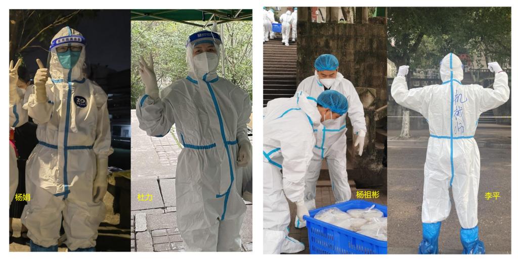 他们在公司出现阳性病例后,换上防护服,义无反顾的进入楼栋做核酸采样、运送一日三餐。一栋楼下来,双腿就像灌了铅一样沉重,防护服里面的衣服也全都湿透了。张建恒老师也主动申请加入了教师志愿者队伍,参与核酸检测,为大家运送物资,主动给封控楼栋的同学送餐。