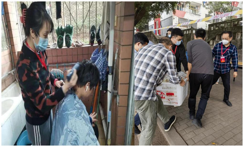 天气逐渐凉了,从进校的薄秋装到厚厚的羽绒服,员工们看在眼里疼在心里,纷纷表白公司的老师。同学们为守护他们健康的老师们点赞,他们或灯光下孤身守候、或温柔进行核酸检测、或化身“托尼”为同学理发、或每天问候生病住院的研究生、或帮他们送饭、取物资。