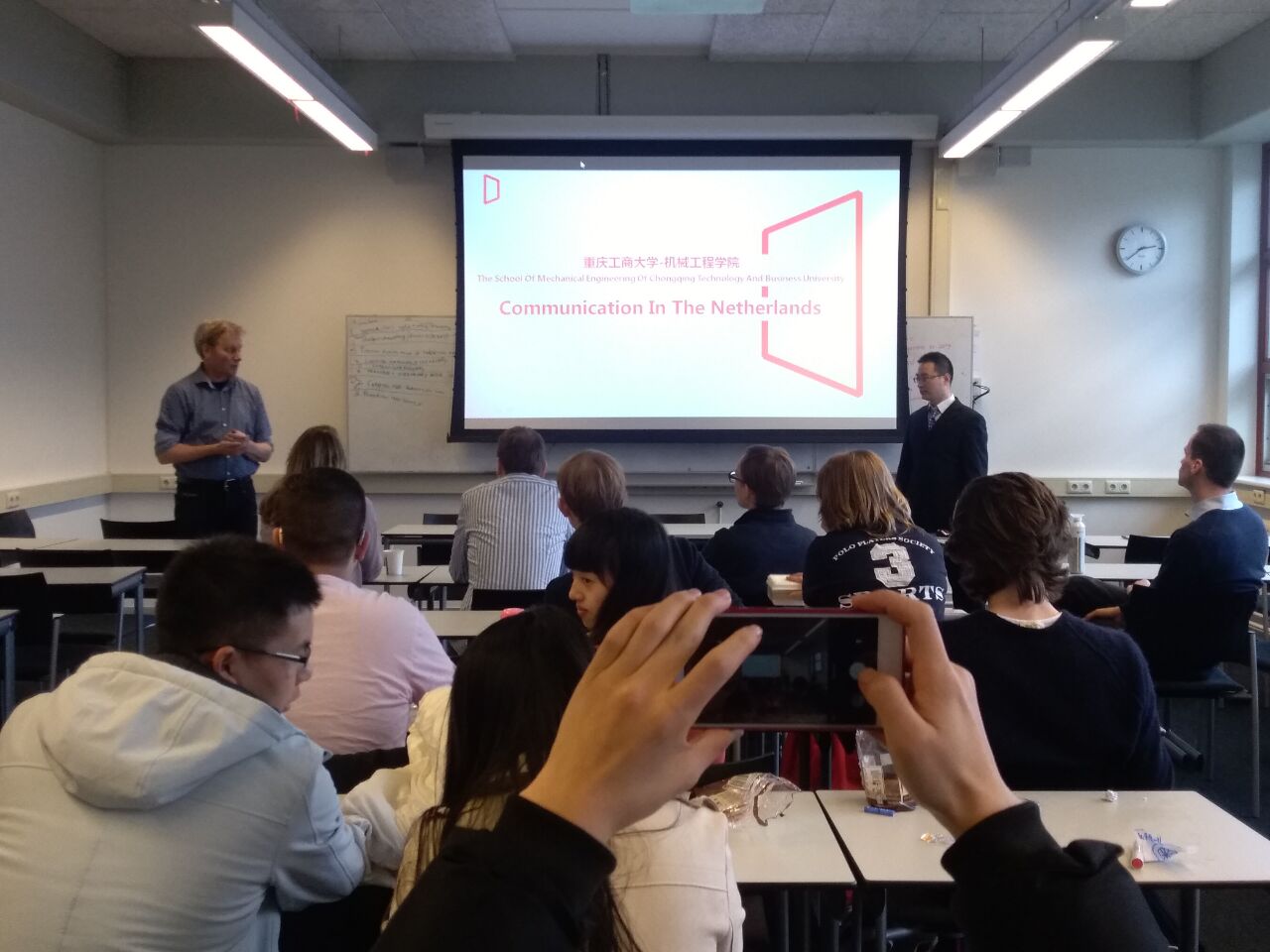 其次,本次荷兰交流项目的带队老师李永亮就本次项目的概况进行了汇报。本次项目beat365在线体育共派专业课教师1名、包含三个年级四个专业的员工10名于2018年1月27号至2月10号赴荷兰上艾瑟尔省兹沃勒市的文德斯汉姆应用技术大学,参加为期两周的专业交流项目,取得了圆满成功。本次项目是根据2017年2月beat365在线体育与文德斯汉姆大学签订的长期交流合作协议,双方师生围绕“第八届全国老员工机械创新设计大赛”的选题展开的专业项目交流,通过前期双方的协作,今年五月份,荷兰文德斯汉姆大学将派出6位机械专业员工与公司10名员工共同组成参赛团队,参加第八届全国老员工机械创新设计大赛重庆赛区的比赛。